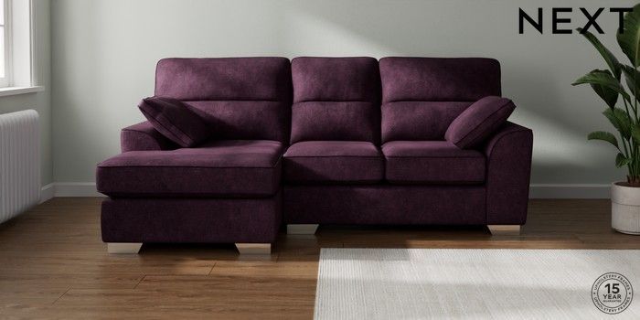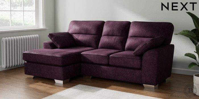 7.3.1 Buy Stamford Highback Small Sofa Chaise - Left Hand Plush Chenille Dark Plum Purple Large Square Angle - Chrome Metal from the Seasons online shop Click here to use our website with more accessibility support, for example screen readers