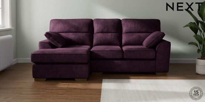 7.3.1 Buy Stamford Highback Small Sofa Chaise - Left Hand Plush Chenille Dark Plum Purple Large Square Angle - Mid from the Seasons online shop Click here to use our website with more accessibility support, for example screen readers