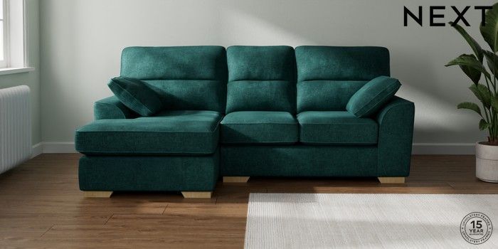 7.2.10 Buy Stamford Highback Small Sofa Chaise - Left Hand Plush Chenille Dark Teal Green Large Square Angle - Light from the Seasons online shop Click here to use our website with more accessibility support, for example screen readers