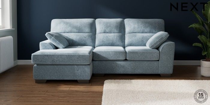 7.2.10 Buy Stamford Highback Small Sofa Chaise - Left Hand Plush Chenille Light Blue Large Square Angle - Gunmetal from the Seasons online shop Click here to use our website with more accessibility support, for example screen readers