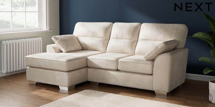 7.3.1 Buy Stamford Highback Small Sofa Chaise - Left Hand Plush Chenille Oyster Large Square Angle - Chrome Metal from the Seasons online shop Click here to use our website with more accessibility support, for example screen readers