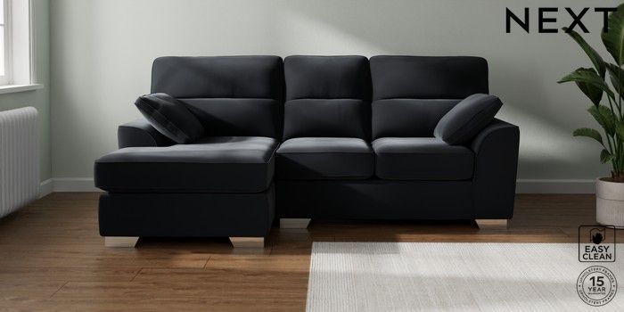 7.3.1 Buy Stamford Highback Small Sofa Chaise - Left Hand Plush Velvet Easy Clean Charcoal Grey Large Square Angle - Chrome Metal from the Seasons online shop Click here to use our website with more accessibility support, for example screen readers