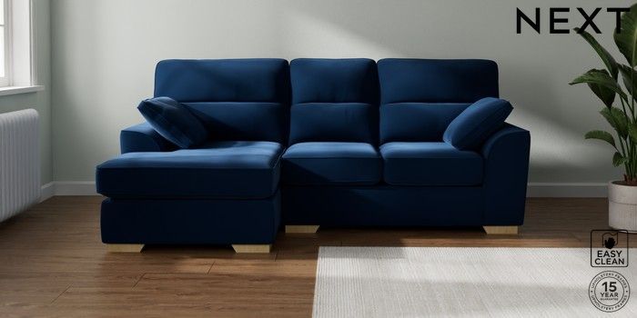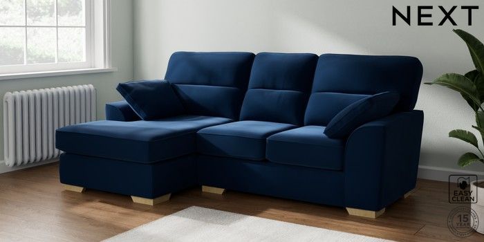 7.3.1 Buy Stamford Highback Small Sofa Chaise - Left Hand Plush Velvet Easy Clean Navy Blue Large Square Angle - Light from the Seasons online shop Click here to use our website with more accessibility support, for example screen readers