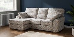 7.3.1 Buy Stamford Highback Small Sofa Chaise - Left Hand Relaxed Linen Look Print Woodblock Floral Blue Large Square Angle - Mid from the Seasons online shop Click here to use our website with more accessibility support, for example screen readers