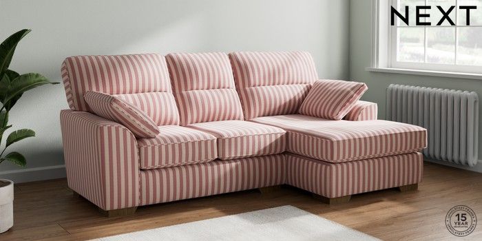 7.3.1 Buy Stamford Highback Small Sofa Chaise - Right Hand Bold Chenille Stripe Dark Pink Large Square Angle - Mid from the Seasons online shop Click here to use our website with more accessibility support, for example screen readers