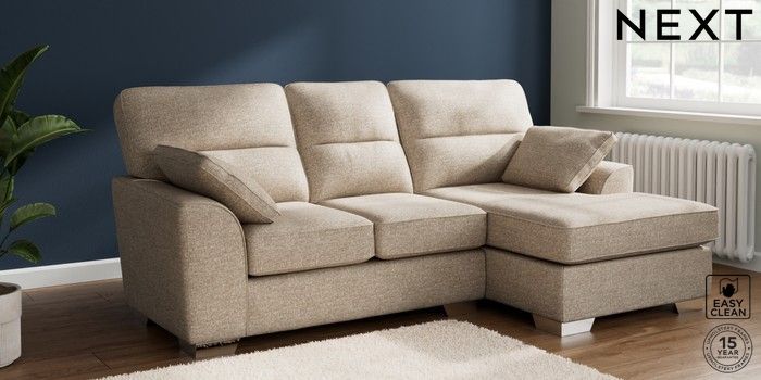 7.3.1 Buy Stamford Highback Small Sofa Chaise - Right Hand Chunky Boucle Easy Clean Mid Natural Large Square Angle - Chrome Metal from the Seasons online shop Click here to use our website with more accessibility support, for example screen readers