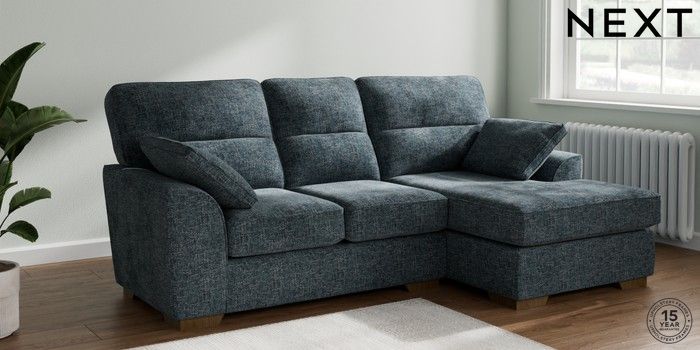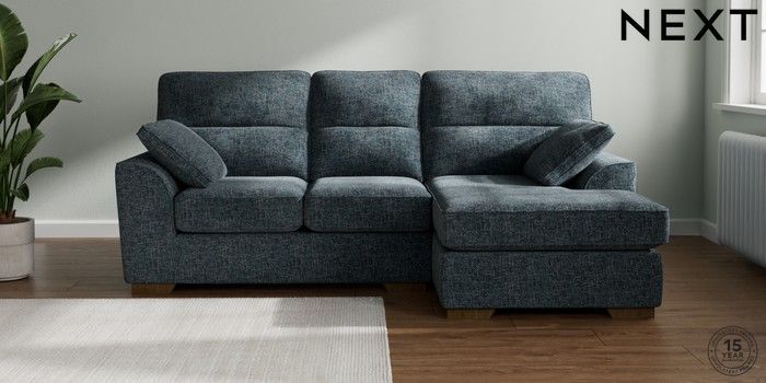 7.2.10 Buy Stamford Highback Small Sofa Chaise - Right Hand Chunky Chenille Dark Navy Blue Large Square Angle - Mid from the Seasons online shop Click here to use our website with more accessibility support, for example screen readers