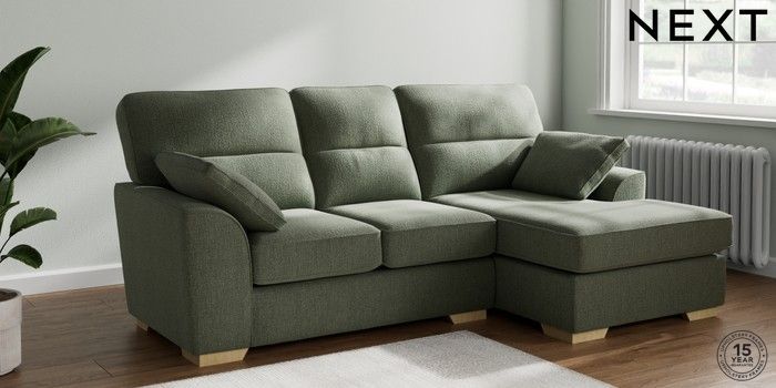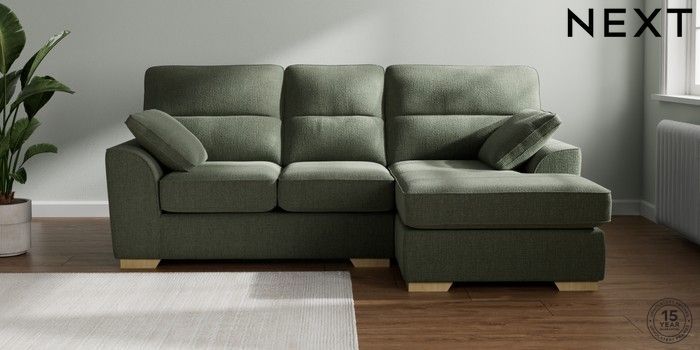 7.2.10 Buy Stamford Highback Small Sofa Chaise - Right Hand Chunky Texture Mid Forest Green Large Square Angle - Light from the Seasons online shop Click here to use our website with more accessibility support, for example screen readers