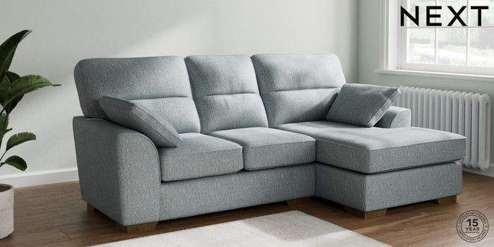 7.2.10 Buy Stamford Highback Small Sofa Chaise - Right Hand Chunky Weave Mid Blue Large Square Angle - Mid from the Seasons online shop Click here to use our website with more accessibility support, for example screen readers
