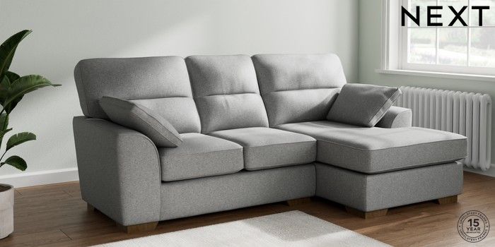7.2.10 Buy Stamford Highback Small Sofa Chaise - Right Hand Chunky Weave Mid Grey Large Square Angle - Mid from the Seasons online shop Click here to use our website with more accessibility support, for example screen readers
