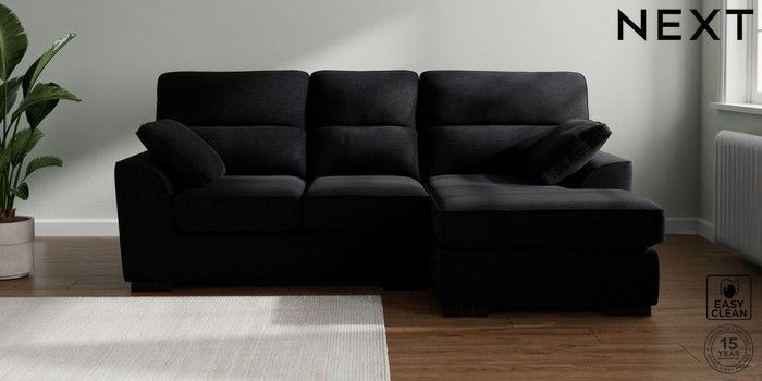 7.2.10 Buy Stamford Highback Small Sofa Chaise - Right Hand Fine Chenille Easy Clean Black Large Square Angle - Dark from the Seasons online shop Click here to use our website with more accessibility support, for example screen readers