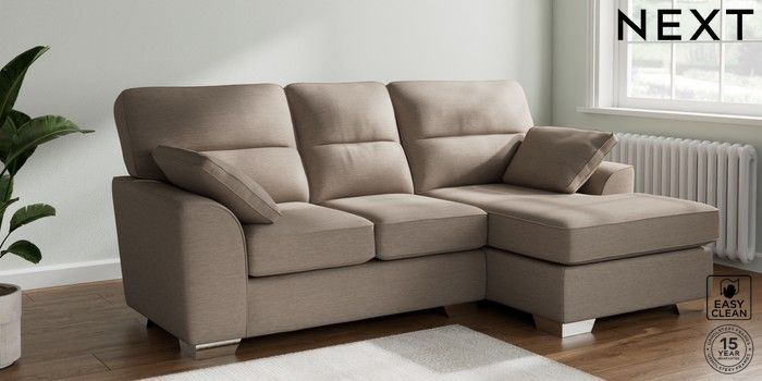 7.3.1 Buy Stamford Highback Small Sofa Chaise - Right Hand Fine Chenille Easy Clean Mid Taupe Brown Large Square Angle - Chrome Metal from the Seasons online shop Click here to use our website with more accessibility support, for example screen readers