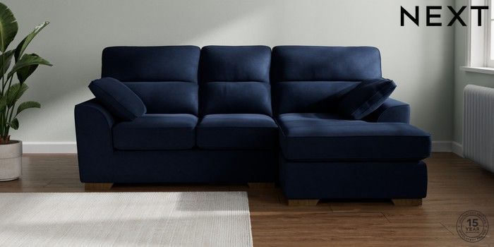 7.2.10 Buy Stamford Highback Small Sofa Chaise - Right Hand Luxe Chenille Navy Blue Large Square Angle - Mid from the Seasons online shop Click here to use our website with more accessibility support, for example screen readers