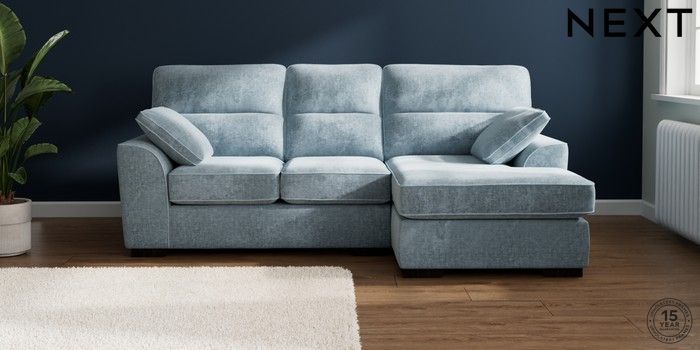 7.2.10 Buy Stamford Highback Small Sofa Chaise - Right Hand Plush Chenille Light Blue Large Square Angle - Dark from the Seasons online shop Click here to use our website with more accessibility support, for example screen readers