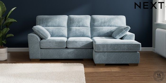 7.2.10 Buy Stamford Highback Small Sofa Chaise - Right Hand Plush Chenille Light Blue Large Square Angle - Mid from the Seasons online shop Click here to use our website with more accessibility support, for example screen readers