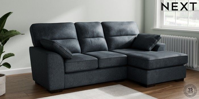 7.2.10 Buy Stamford Highback Small Sofa Chaise - Right Hand Plush Chenille Slate Blue Large Square Angle - Dark from the Seasons online shop Click here to use our website with more accessibility support, for example screen readers