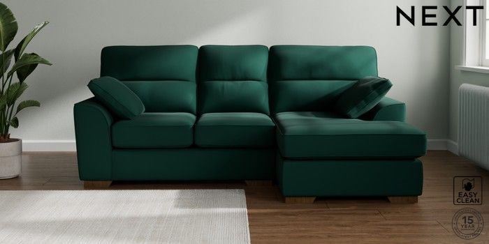 7.3.1 Buy Stamford Highback Small Sofa Chaise - Right Hand Plush Velvet Easy Clean Bottle Green Large Square Angle - Mid from the Seasons online shop Click here to use our website with more accessibility support, for example screen readers