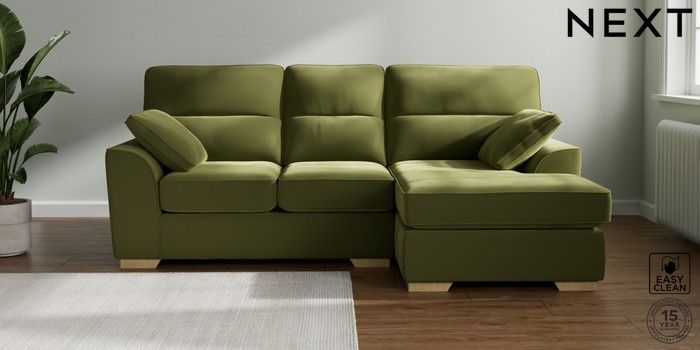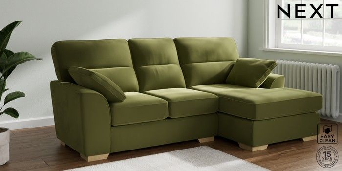 7.3.1 Buy Stamford Highback Small Sofa Chaise - Right Hand Plush Velvet Easy Clean Mid Olive Green Large Square Angle - Light from the Seasons online shop Click here to use our website with more accessibility support, for example screen readers