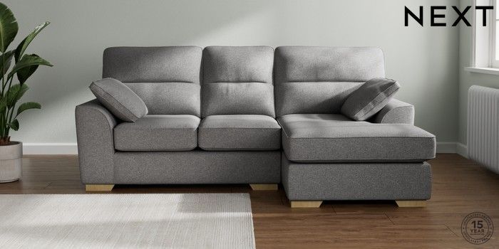 7.2.10 Buy Stamford Highback Small Sofa Chaise - Right Hand Studio Chenille Mid Grey Large Square Angle - Light from the Seasons online shop Click here to use our website with more accessibility support, for example screen readers