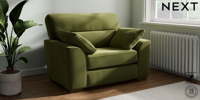 7.3.1 Buy Stamford Highback Snuggle Plush Velvet Easy Clean Mid Olive Green Large Square Angle - Mid from the Seasons online shop Click here to use our website with more accessibility support, for example screen readers