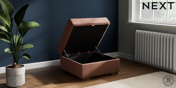 7.2.10 Buy Stamford Highback Storage Footstool Relaxed Linen Look Light Rust Brown Square Angle - Mid from the Seasons online shop Click here to use our website with more accessibility support, for example screen readers