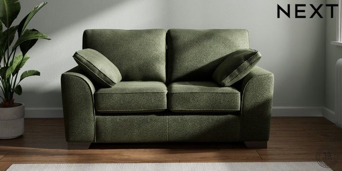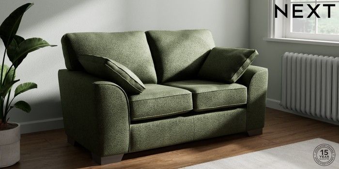 7.3.1 Buy Stamford 2 Seater Small Sofa Boucle Chenille Dark Moss Green Large Square Angle - Gunmetal from the Seasons online shop Click here to use our website with more accessibility support, for example screen readers