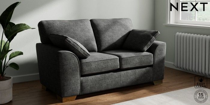 7.3.1 Buy Stamford 2 Seater Small Sofa Boucle Weave Easy Clean Charcoal Grey Large Square Angle - Brushed Brass from the Seasons online shop Click here to use our website with more accessibility support, for example screen readers