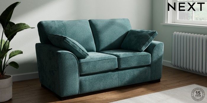 7.2.10 Buy Stamford 2 Seater Small Sofa Chunky Chenille Mid Teal Green Large Square Angle - Dark from the Seasons online shop Click here to use our website with more accessibility support, for example screen readers