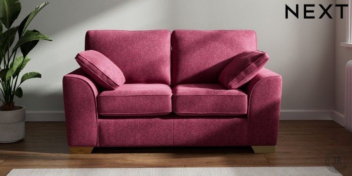 7.2.10 Buy Stamford 2 Seater Small Sofa Cotswold Chenille Dark Raspberry Pink Large Square Angle - Brushed Brass from the Seasons online shop Click here to use our website with more accessibility support, for example screen readers