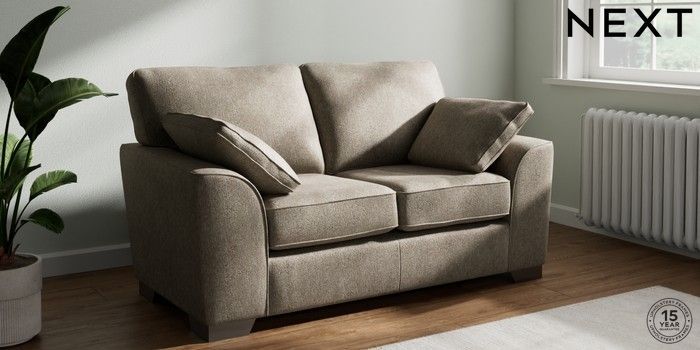 7.3.1 Buy Stamford 2 Seater Small Sofa Cotswold Chenille Mid Mink Brown Large Square Angle - Gunmetal from the Seasons online shop Click here to use our website with more accessibility support, for example screen readers