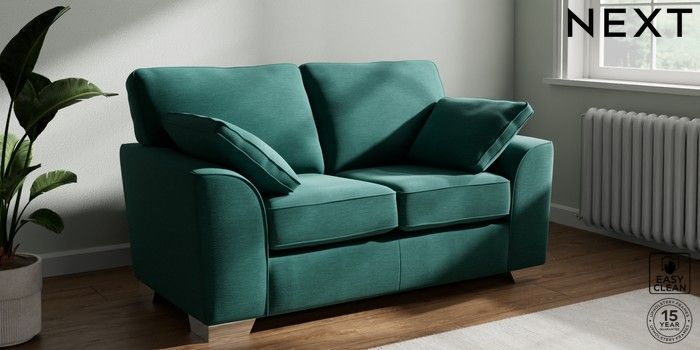 7.3.1 Buy Stamford 2 Seater Small Sofa Fine Chenille Easy Clean Dark Juniper Green Large Square Angle - Chrome Metal from the Seasons online shop Click here to use our website with more accessibility support, for example screen readers