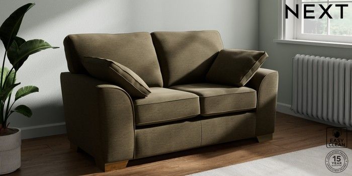 7.3.1 Buy Stamford 2 Seater Small Sofa Fine Chenille Easy Clean Dark Moss Green Large Square Angle - Brushed Brass from the Seasons online shop Click here to use our website with more accessibility support, for example screen readers
