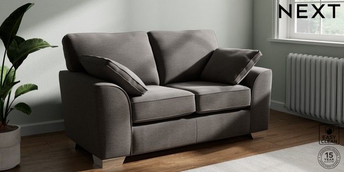7.3.1 Buy Stamford 2 Seater Small Sofa Fine Chenille Easy Clean Dark Smoke Grey Large Square Angle - Chrome Metal from the Seasons online shop Click here to use our website with more accessibility support, for example screen readers