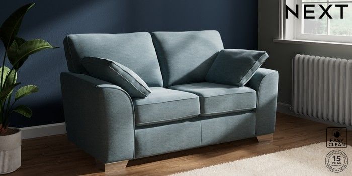 7.3.1 Buy Stamford 2 Seater Small Sofa Fine Chenille Easy Clean Mid Blue Large Square Angle - Chrome Metal from the Seasons online shop Click here to use our website with more accessibility support, for example screen readers