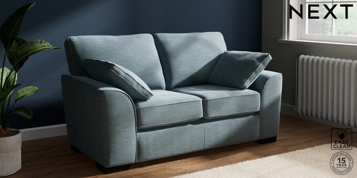7.2.10 Buy Stamford 2 Seater Small Sofa Fine Chenille Easy Clean Mid Blue Large Square Angle - Dark from the Seasons online shop Click here to use our website with more accessibility support, for example screen readers