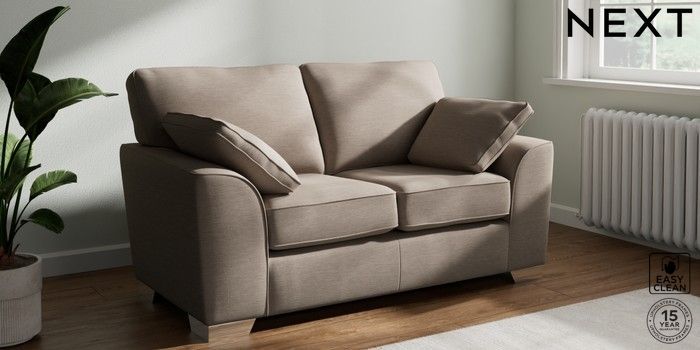 7.3.1 Buy Stamford 2 Seater Small Sofa Fine Chenille Easy Clean Mid Taupe Brown Large Square Angle - Chrome Metal from the Seasons online shop Click here to use our website with more accessibility support, for example screen readers