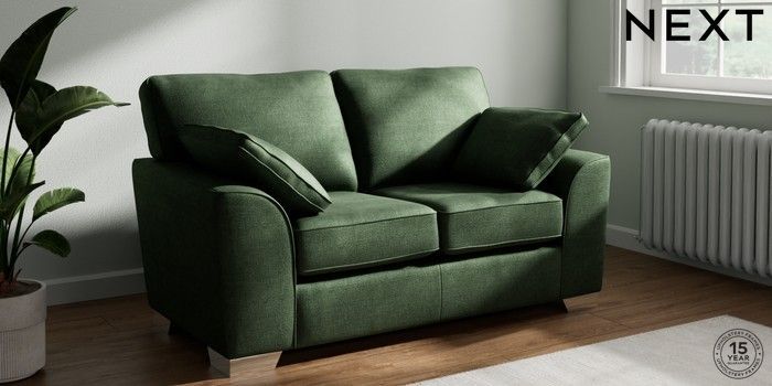 7.3.1 Buy Stamford 2 Seater Small Sofa Luxe Chenille Dark Green Large Square Angle - Chrome Metal from the Seasons online shop Click here to use our website with more accessibility support, for example screen readers