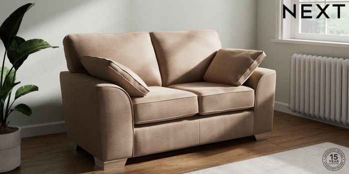 7.3.1 Buy Stamford 2 Seater Small Sofa Luxe Chenille Mid Natural Large Square Angle - Chrome Metal from the Seasons online shop Click here to use our website with more accessibility support, for example screen readers