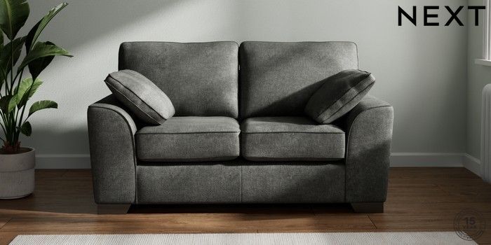 7.3.1 Buy Stamford 2 Seater Small Sofa Plush Chenille Dark Grey Large Square Angle - Gunmetal from the Seasons online shop Click here to use our website with more accessibility support, for example screen readers