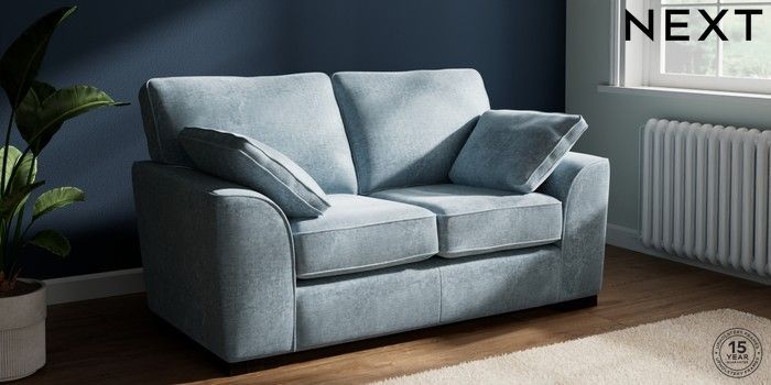 7.2.10 Buy Stamford 2 Seater Small Sofa Plush Chenille Light Blue Large Square Angle - Dark from the Seasons online shop Click here to use our website with more accessibility support, for example screen readers