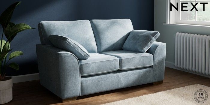 7.2.10 Buy Stamford 2 Seater Small Sofa Plush Chenille Light Blue Large Square Angle - Mid from the Seasons online shop Click here to use our website with more accessibility support, for example screen readers