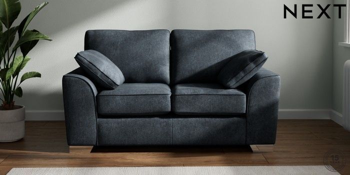 7.3.1 Buy Stamford 2 Seater Small Sofa Plush Chenille Slate Blue Large Square Angle - Chrome Metal from the Seasons online shop Click here to use our website with more accessibility support, for example screen readers
