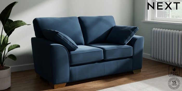 7.3.1 Buy Stamford 2 Seater Small Sofa Plush Velvet Easy Clean Airforce Blue Large Square Angle - Brushed Brass from the Seasons online shop Click here to use our website with more accessibility support, for example screen readers