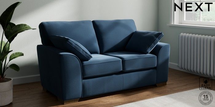 7.3.1 Buy Stamford 2 Seater Small Sofa Plush Velvet Easy Clean Airforce Blue Large Square Angle - Mid from the Seasons online shop Click here to use our website with more accessibility support, for example screen readers