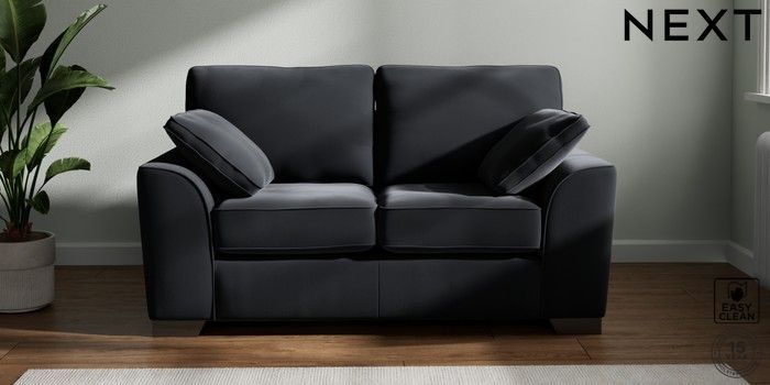 7.3.1 Buy Stamford 2 Seater Small Sofa Plush Velvet Easy Clean Charcoal Grey Large Square Angle - Gunmetal from the Seasons online shop Click here to use our website with more accessibility support, for example screen readers