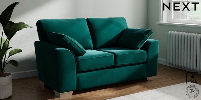 7.3.1 Buy Stamford 2 Seater Small Sofa Plush Velvet Easy Clean Juniper Green Large Square Angle - Chrome Metal from the Seasons online shop Click here to use our website with more accessibility support, for example screen readers