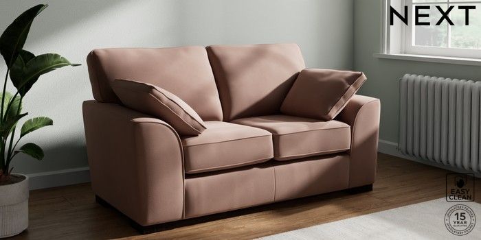7.3.1 Buy Stamford 2 Seater Small Sofa Plush Velvet Easy Clean Mid Natural Large Square Angle - Dark from the Seasons online shop Click here to use our website with more accessibility support, for example screen readers