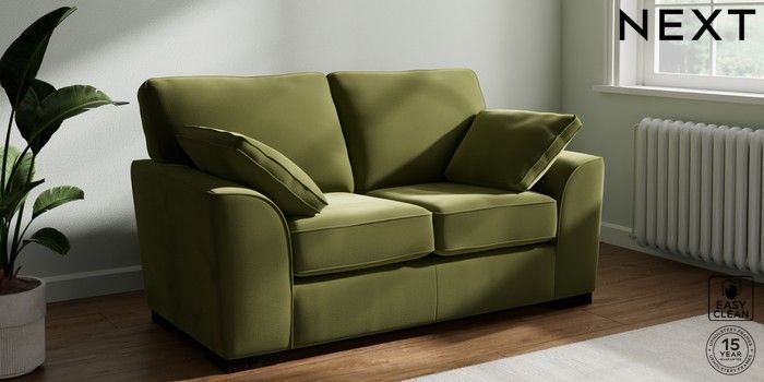 7.3.1 Buy Stamford 2 Seater Small Sofa Plush Velvet Easy Clean Mid Olive Green Large Square Angle - Dark from the Seasons online shop Click here to use our website with more accessibility support, for example screen readers