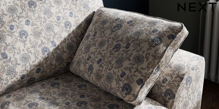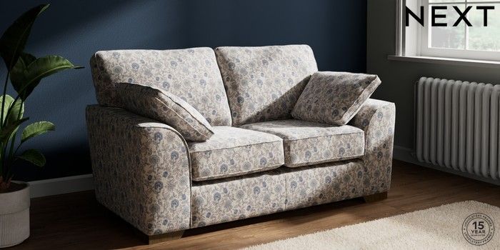 7.3.1 Buy Stamford 2 Seater Small Sofa Relaxed Linen Look Print Woodblock Floral Blue Large Square Angle - Mid from the Seasons online shop Click here to use our website with more accessibility support, for example screen readers