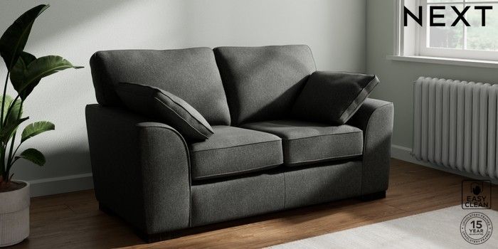 7.3.1 Buy Stamford 2 Seater Small Sofa Tweedy Blend Easy Clean Charcoal Grey Large Square Angle - Dark from the Seasons online shop Click here to use our website with more accessibility support, for example screen readers